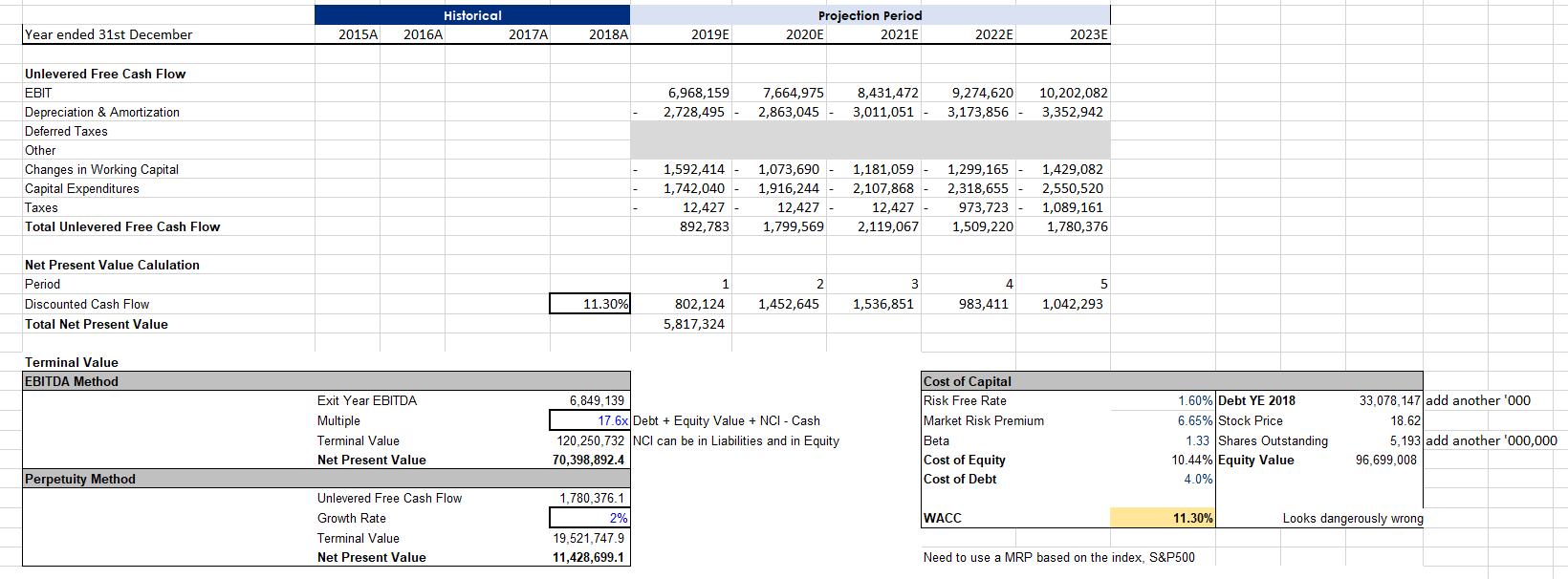 Download the DCF Model below. It is a very basic model with normal assumptions for revenue growth, operating working capital schedule & the PPE schedule. Feel free to add in your own assumptions and make relevant changes! The model is based on YoY averages hence it is not as accurate as I wish it to be.