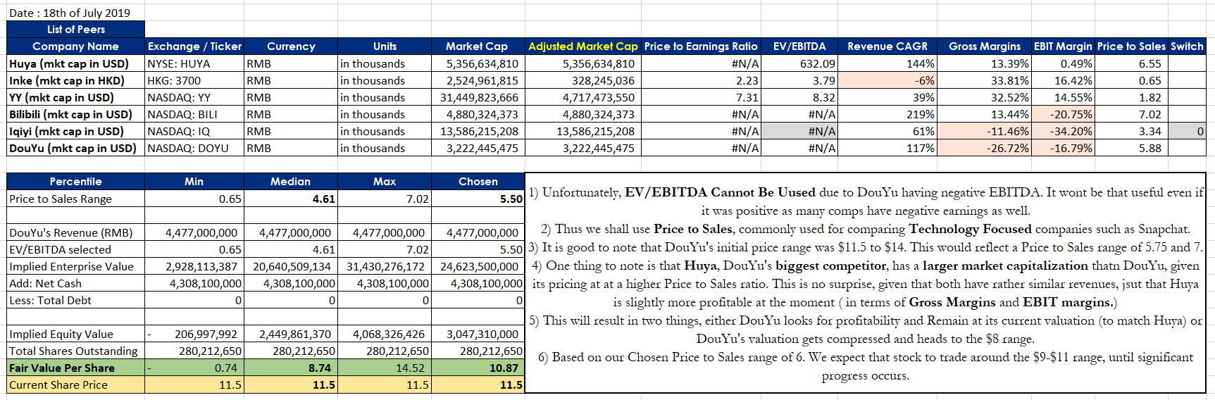 Download a simple pitch book (main focus is on understanding the company, less of financial graphs) as well as a list of comparable companies. (All LTM figures used, basic figures collated)